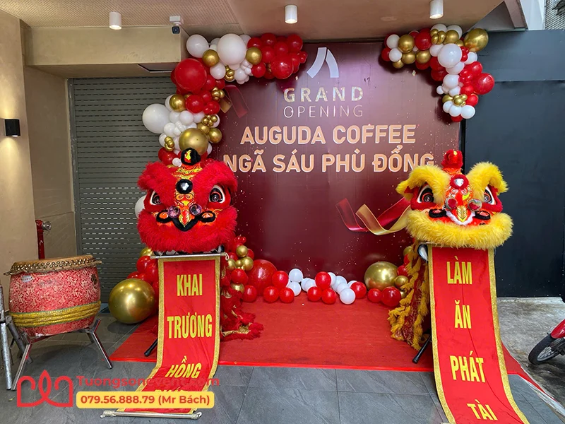 Gói số 3 sẽ có phần đầy đủ hơn khi vừa có backdrop vừa có múa lân. Backdrop khai trương và line bong bóng sau đó trải thảm đỏ sẽ tạo nên một vị trí chụp ảnh kỉ niệm vô cùng đẹp mắt. Lân sẽ hỗ trợ trưng Lân trong 30 phút tại chỗ đặt backdrop thì sẽ càng làm nổi bật địa điểm check-in. Ngoài ra Tường Sơn Event còn miễn phí chi phí thiết kế backdrop cho đến khi ưng ý theo yêu cầu của khách hàng.